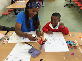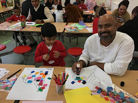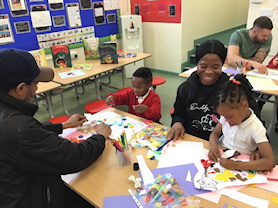 The children in Reception enjoyed working with their parents. They focused on the creation story and made pictures of animals using collage materials.