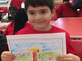 Year 1 thought about how they felt about God’s creation. Using some artwork they chose some vocabulary and made their own to describe the art. They drew and painted their own Creation pictures and wrote their own prayer thanking God for what he had made and given them.